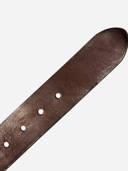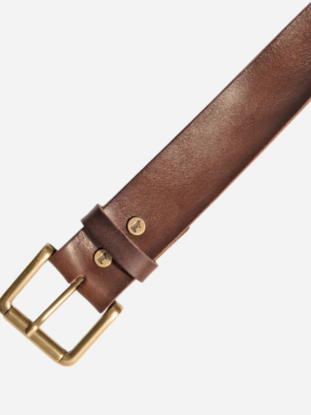 Our artisans hand-burnish the edges of the belt and add creases and wrinkles for a time-worn, vintage effect. The steel-molded antique brass finish roller buckle is connected to the strap with WILL cow-engraved Chicago screws, allowing the buckle to be switched out for another 38-millimeter buckle of your choice.